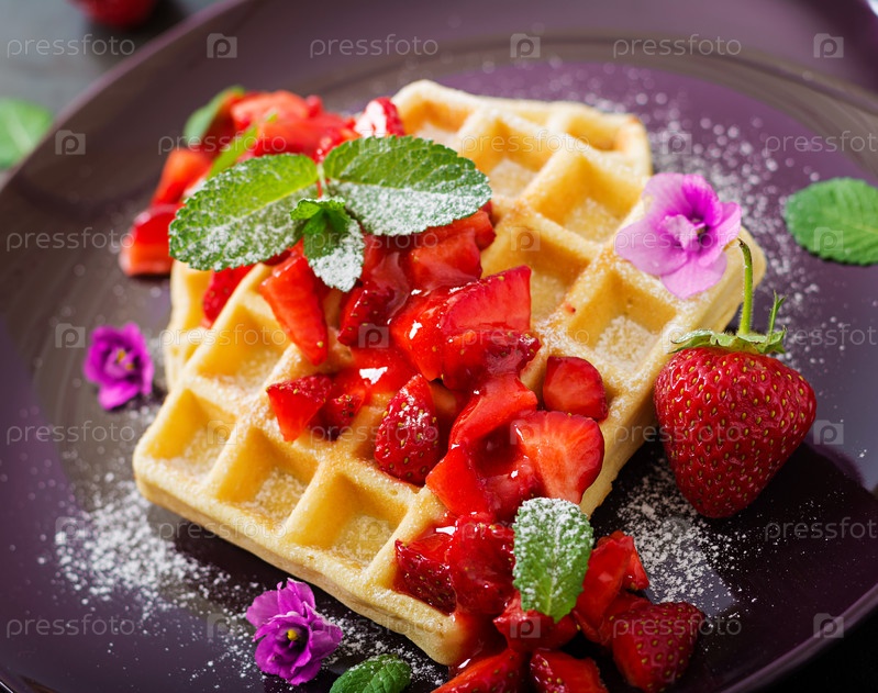 Бельгийские вафли с клубникой и сиропом