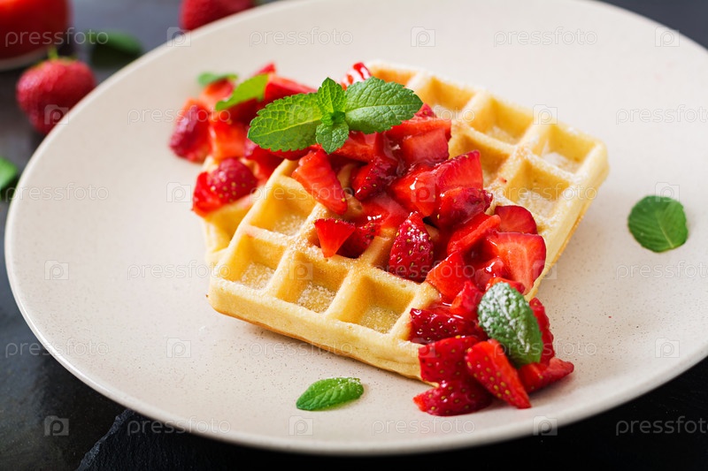 Бельгийские вафли с клубникой и сиропом