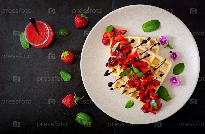Бельгийские вафли с клубникой и сиропом