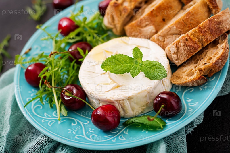 Запеченный сыр, вишня и хлеб