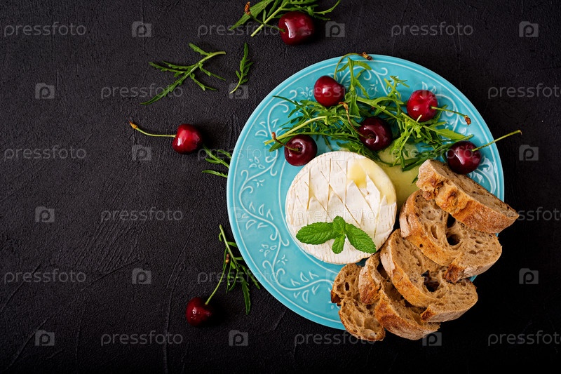 Запеченный сыр, вишня и хлеб