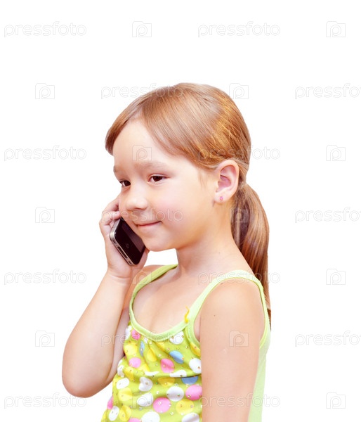 Ребенок с телефоном на белом фоне
