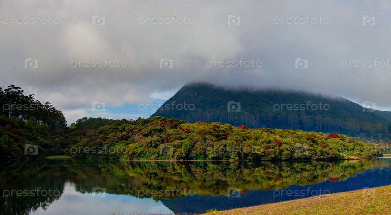 Отражение озера Грегори в Нувара Элия в тумане, Шри-Ланка