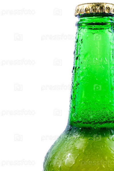 Запотевшая бутылка пива, изолированная на белом фоне
