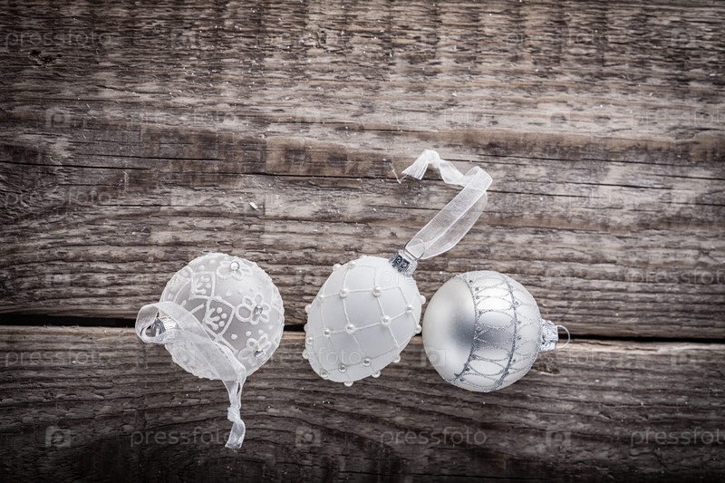 Белые рождественские шары на деревянном фоне