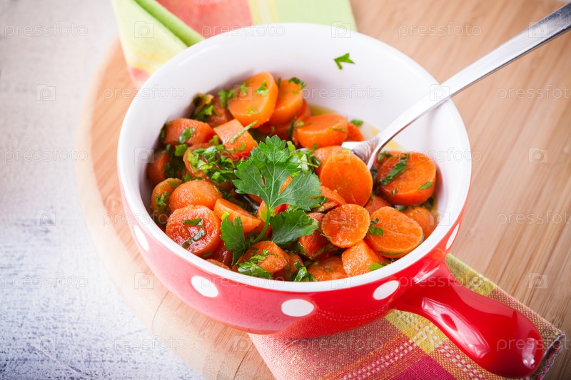 Морковь, приготовленная с чесноком, медом и петрушкой