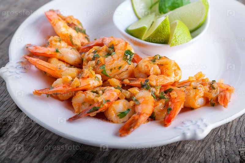 Жареные креветки с лаймом