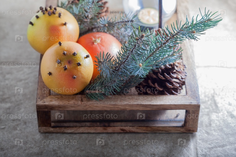 Рождественские апельсины в деревянной коробке