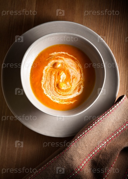 Тыквенный суп со сметаной на столе