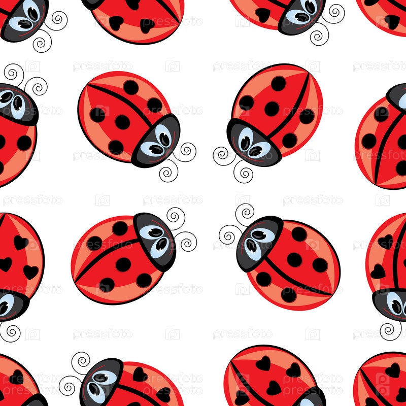 Бесшовный шаблон с мультипликационными божьими коровками на белом фоне
