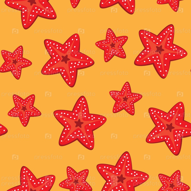 Бесшовный шаблон с морскими звездами на оранжевом фоне