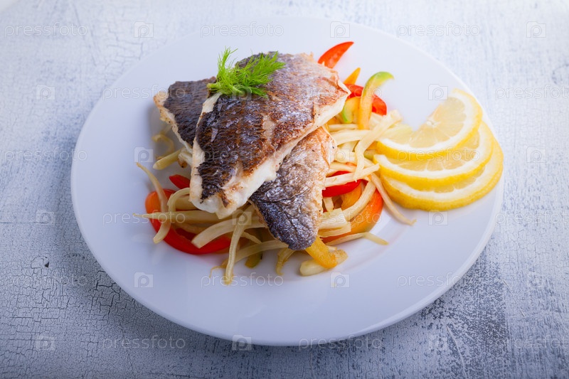 Морской лещ с овощами