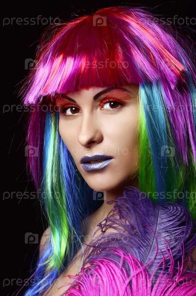 Девушка с красочными окрашенными волосами