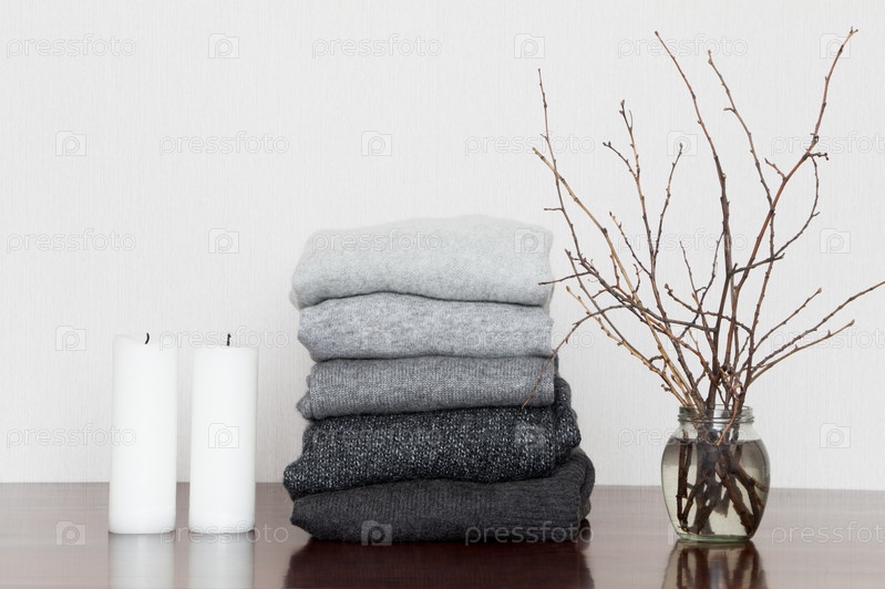 Куча серых вязаных свитеров