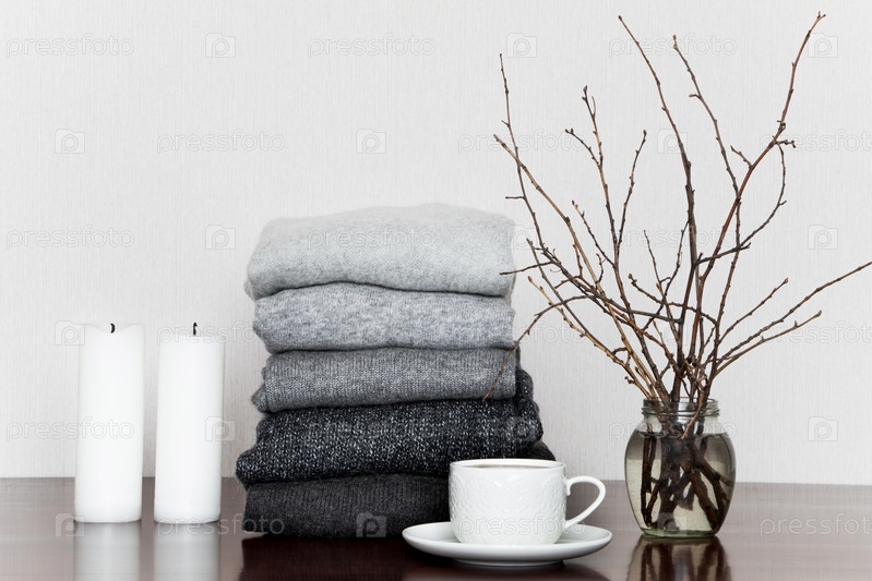 Куча серых вязаных свитеров