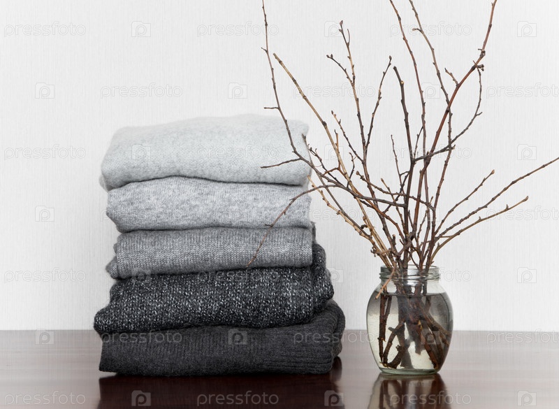 Куча серых вязаных свитеров