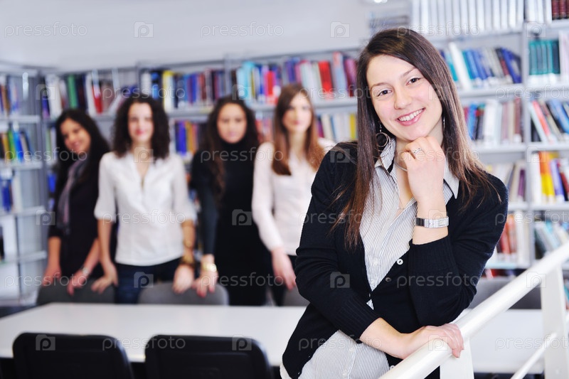 Счастливые студентки в библиотеке