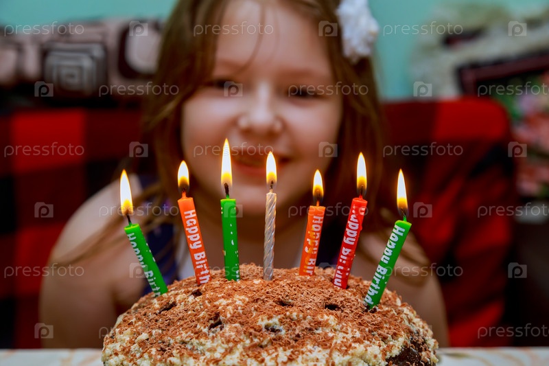 Маленькая девочка дует на свечи в День рождения