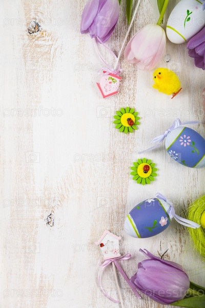 Фиолетовые тюльпаны и пасхальные яйца