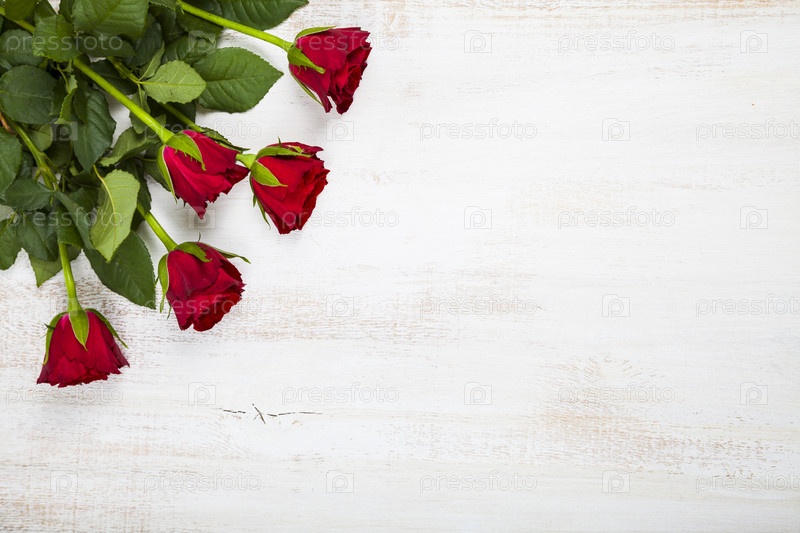 Красные розы на деревянном фоне