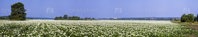 Панорама. Цветущее поле картофеля