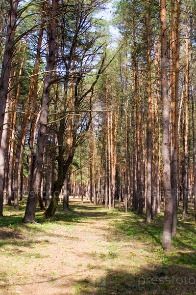 Весенний сосновый лес в солнечный день