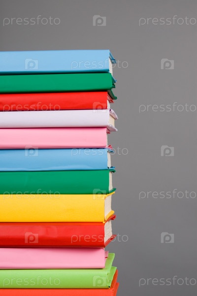 Стопка красочных книг на сером фоне