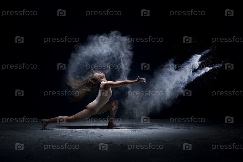 Современная танцовщица в облаке порошка