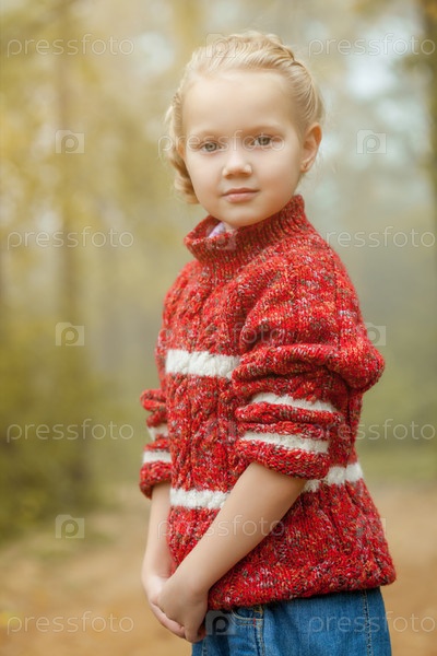 Маленькая девочка позирует в красном свитере
