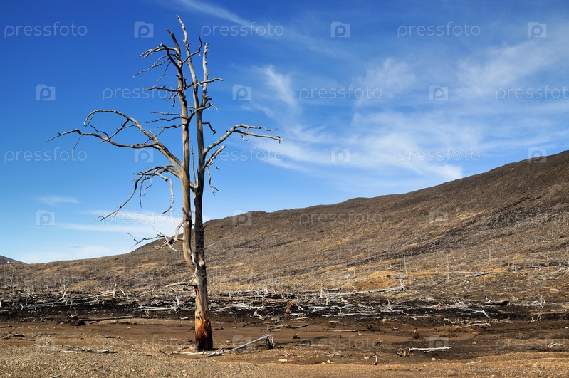 Мертвое дерево возле металлургического завода. Последствия неблагоприятных экологических условий