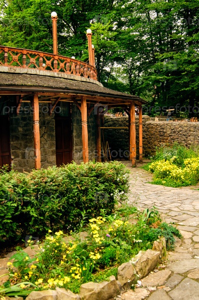 Каменное здание в летнем парке