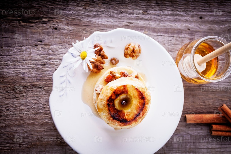 Запеченное яблоко с орехами и изюмом