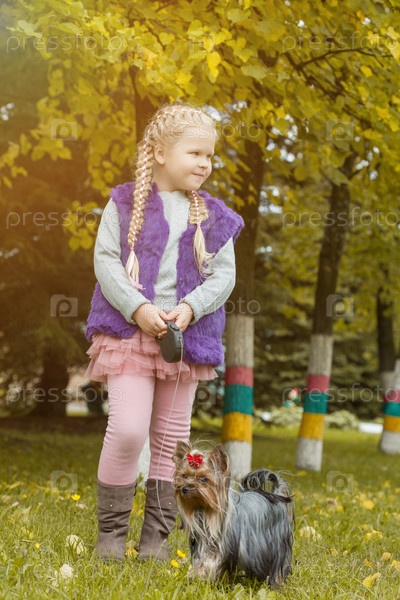 Симпатичная маленькая девочка с собачкой