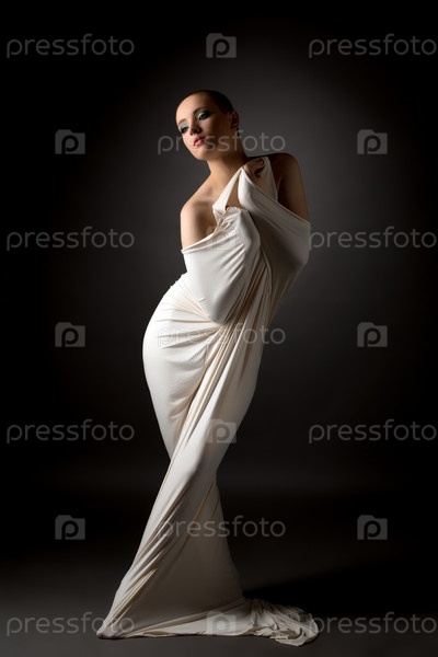 Девушка позирует в ткани