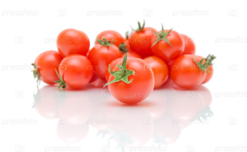 Спелые помидоры крупным планом на белом фоне с отражением