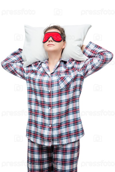 Спящая женщина на подушке в клетчатой пижаме