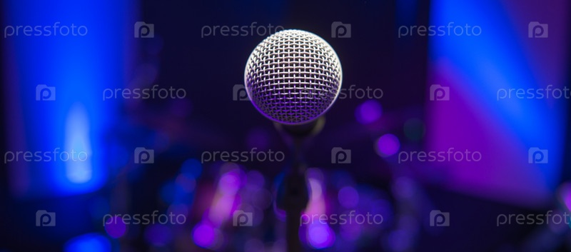 Микрофон на сцене на фоне зрительного зала