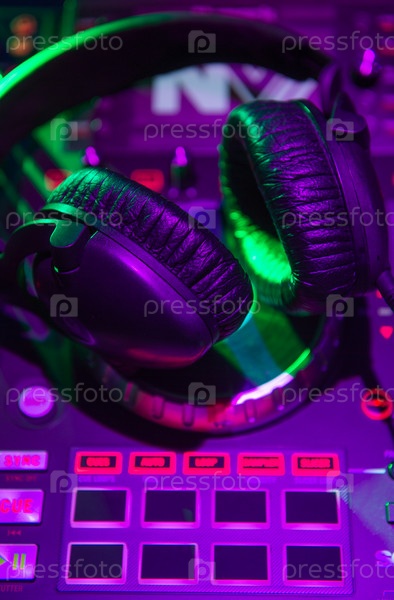 Диджей-микшер с наушниками в ночном клубе