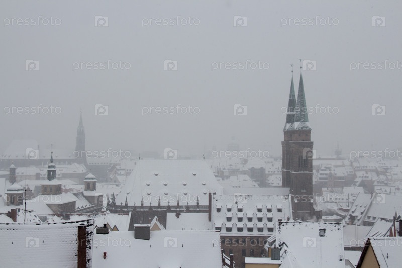 Крыши зданий в зимнее время. Нюрнберг. Германия