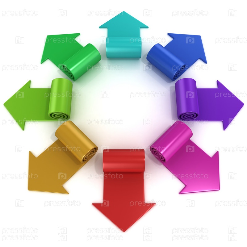 Радужные спиральные стрелки направлены от центра