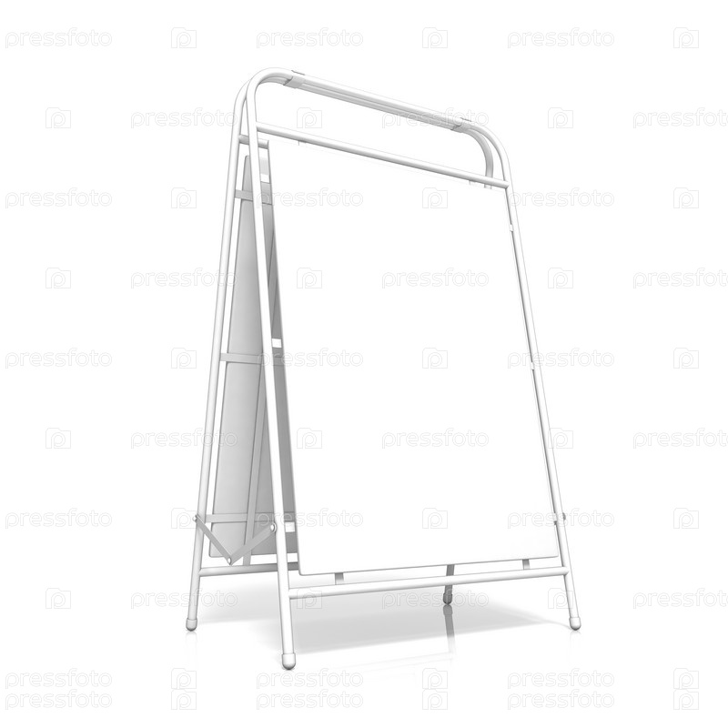 Белый рекламный стенд. Вид со стороны. 3D