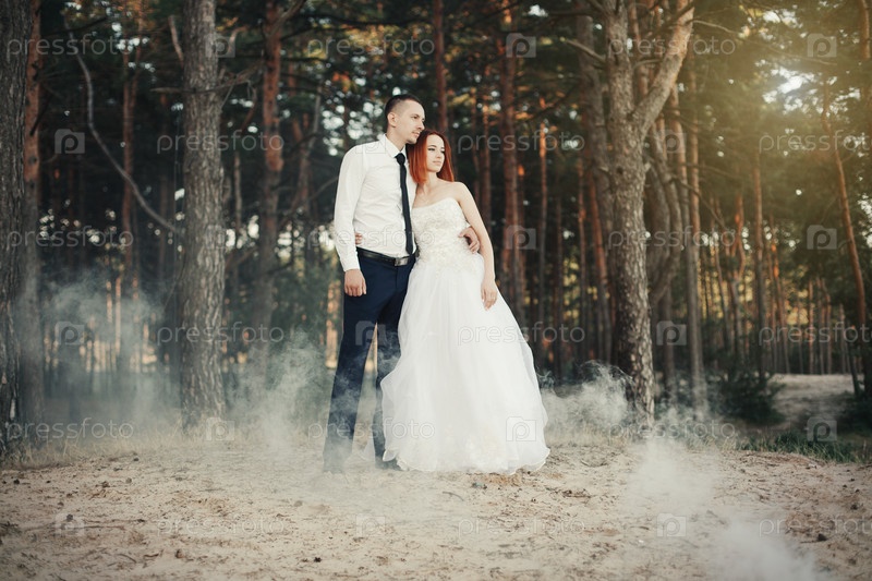 Молодожены в сосновом лесу