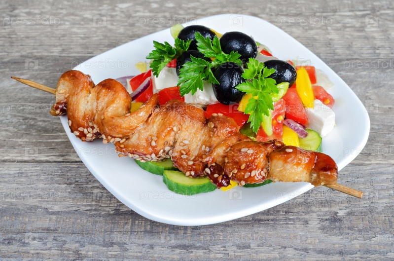 Цыпленок на вертеле с салатом