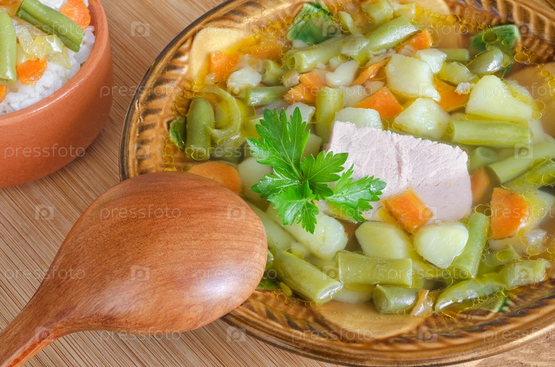 Суп из свинины с овощами и лимоном