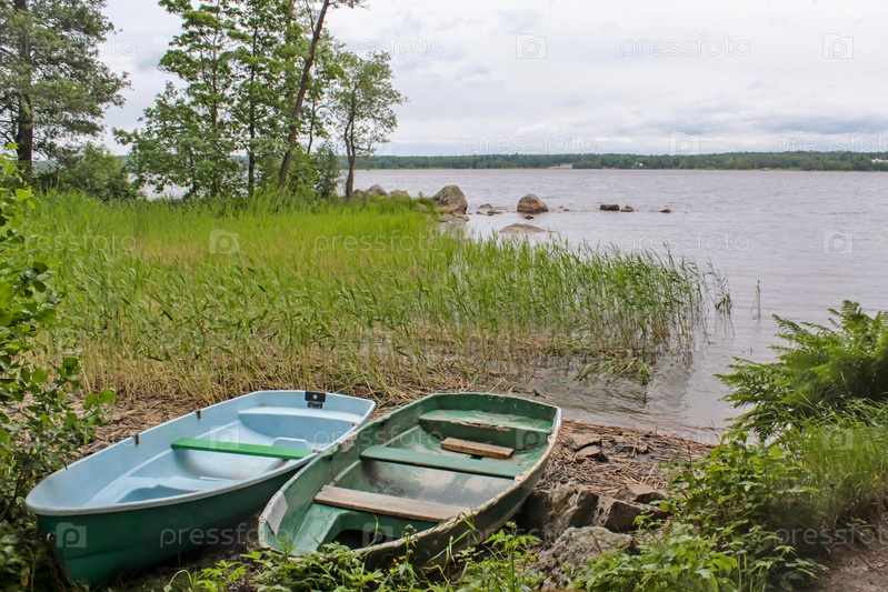 Лодки на берегу озера в Выборге, Россия