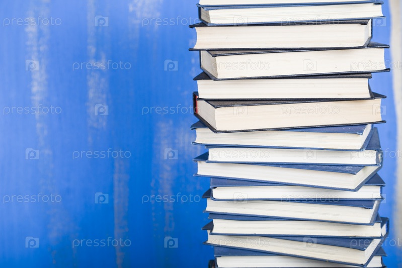 Стопка книг на синем фоне
