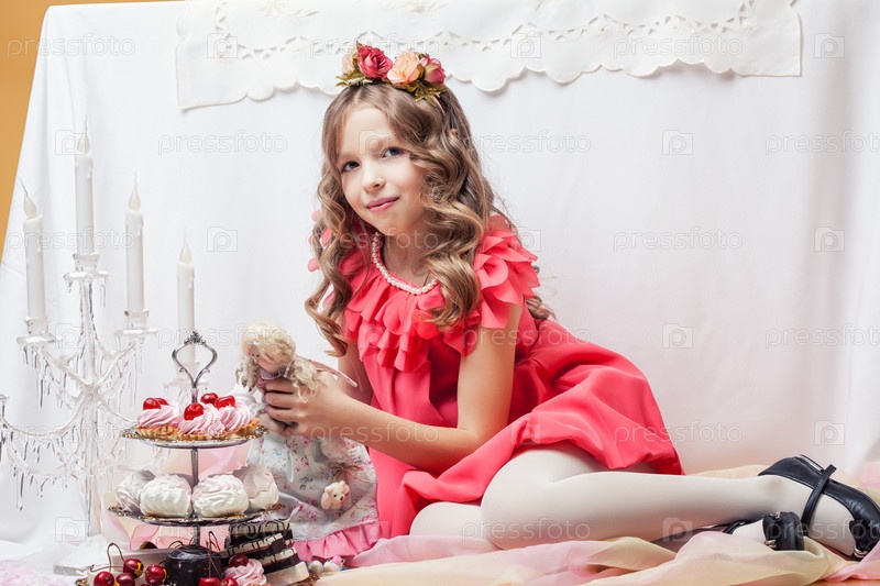 Портрет красивой маленькой девочки с куклой