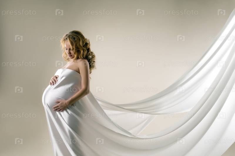 Беременная женщина в белой ткани