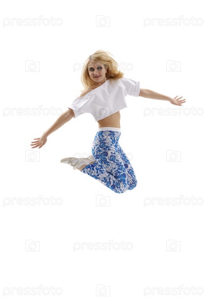 Молодая блондинка танцор в прыжке