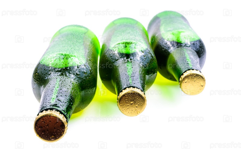 Запотевшие бутылки пива, изолированные на белом фоне